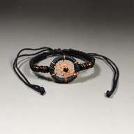 夢を変える力を持つと信じている、ドリームキャッチャーの形状をミサンガ風にアレンジし、コットンコード、円盤状のカラービーズ等で編み上げたブレスレットです。
