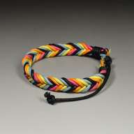 ブレスレット・コットンコード・V模様(複数色) : MAB020 在庫数 単価 発注数 - + 備考 カートに入れる 価格: 330 円/ 個 (本体価格:300円+税:30円) 重量: 約 5 グラム 色: 黒色・躑躅色・橙色・黄蘗色・露草色 コットンコード(直径 約1mm)を9本用いて、V字模様に編み上げたブレスレットです。ブレスレットの幅は約10mm 厚み約 4mmです。テール部を調整することで脱着や容易です。 在庫数 単価 発注数 - + 備考 カートに入れる