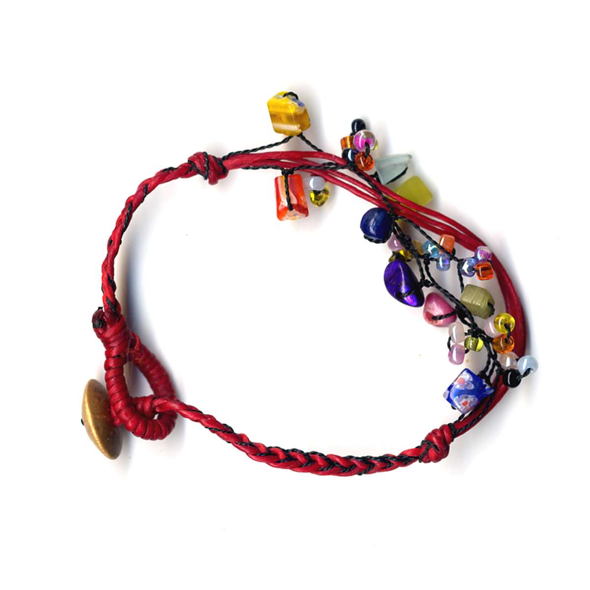 ブレスレット・カラーストーン&グラスビーズ : BCS007 在庫数 単価 発注数 - + 備考 カートに入れる 価格: 275 円/ 個 (本体価格:250円+税:25円) 重量: 約 6 グラム 色: 紅色・黒色 染色されたカラーストーン片(5~10mm)、グラスビーズ(直径2~3mm)を用いて、蝋引き紐で編上げたブレスレットです。先端部には留め袖用の輪と、ウッドビーズがあります。カラーストーン片の形・色・配置は個々に異なります。また、ビーズは汗や暖かなお湯で色落ちする場合がありますのでご注意下さい。 在庫数 単価 発注数 - + 備考 カートに入れる