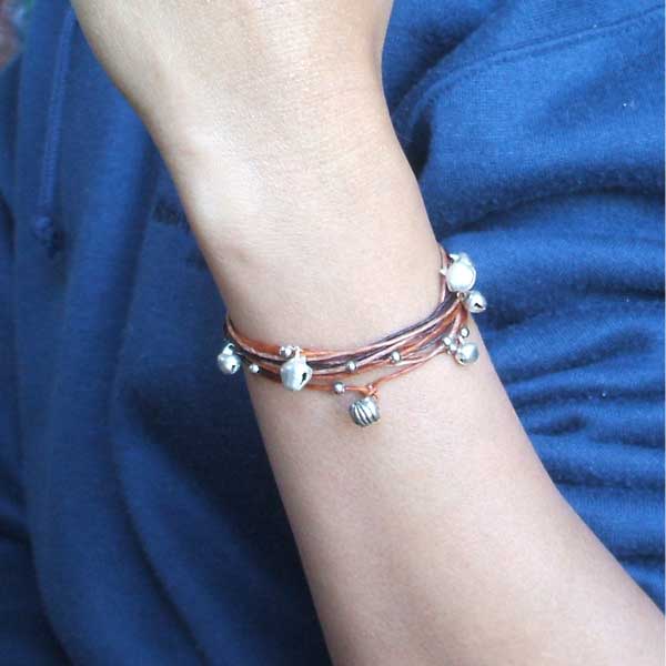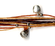 蝋引き紐には鈴の形をしたビーズ(5~7mm)や球形ビーズ(直径約 3mm)が通されており、位置を移動させることが出来ます。