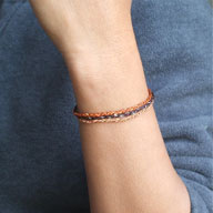 ブレスレット・蝋引き紐・ラメ : BNW005 在庫数 単価 発注数 - + 備考 カートに入れる 価格: 308 円/ 個 (本体価格:280円+税:28円) 重量: 約 3 グラム 色: 焦茶色・代赭色・駱駝色 ラメが入った細い蝋引き紐を三つ編みし、それを3本束ねたブレスレットです。先端部には鈴ビーズ(直径8mm)があり、反対側の端にはビーズを留めるための輪があります。メインの部分は 長さ約 15~16cm です。装着する手首の周囲が16cm以下方(手首の細い女性、男性)向けです。 在庫数 単価 発注数 - + 備考 カートに入れる