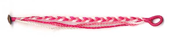 ブレスレット・蝋引き紐・三つ編みライン : BNT010 在庫数 単価 発注数 - + 備考 カートに入れる 価格: 418 円/ 個 (本体価格:380円+税:38円) 重量: 約 4 グラム 色: 茜色・桃色・白色 蝋引き紐を用いて3色で三つ編みの部分(幅7mm) と1色で三つ編みの部分(幅 3mm)を3本、の二つのパートで構成されています。先端部には算盤の玉形のウッドビーズ(直径12mm 幅 5mm)があり、反対側の端にはウッドビーズを留めるための輪があります。内径は16.5~18cmで、固定長です。 在庫数 単価 発注数 - + 備考 カートに入れる
