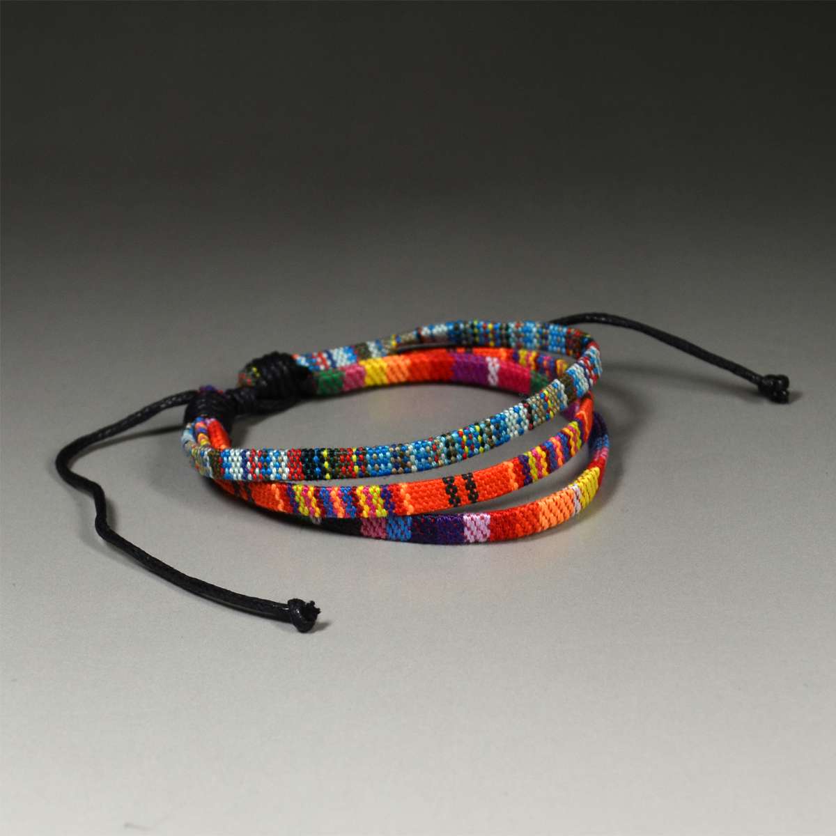 ブレスレット・テキスタイル[3ライン] : MTT005 在庫数 単価 発注数 - + 備考 カートに入れる 価格: 385 円/ 個 (本体価格:350円+税:35円) 重量: 約 3 グラム ランダムな縦縞模様のテキスタイルの紐を3本束ねて、端をコットンコードで結び処理したブレスレットです。1本のテキスタイル:幅約 5mm 厚み 2mm 長さ 17mmテール:約 10cm 在庫数 単価 発注数 - + 備考 カートに入れる
