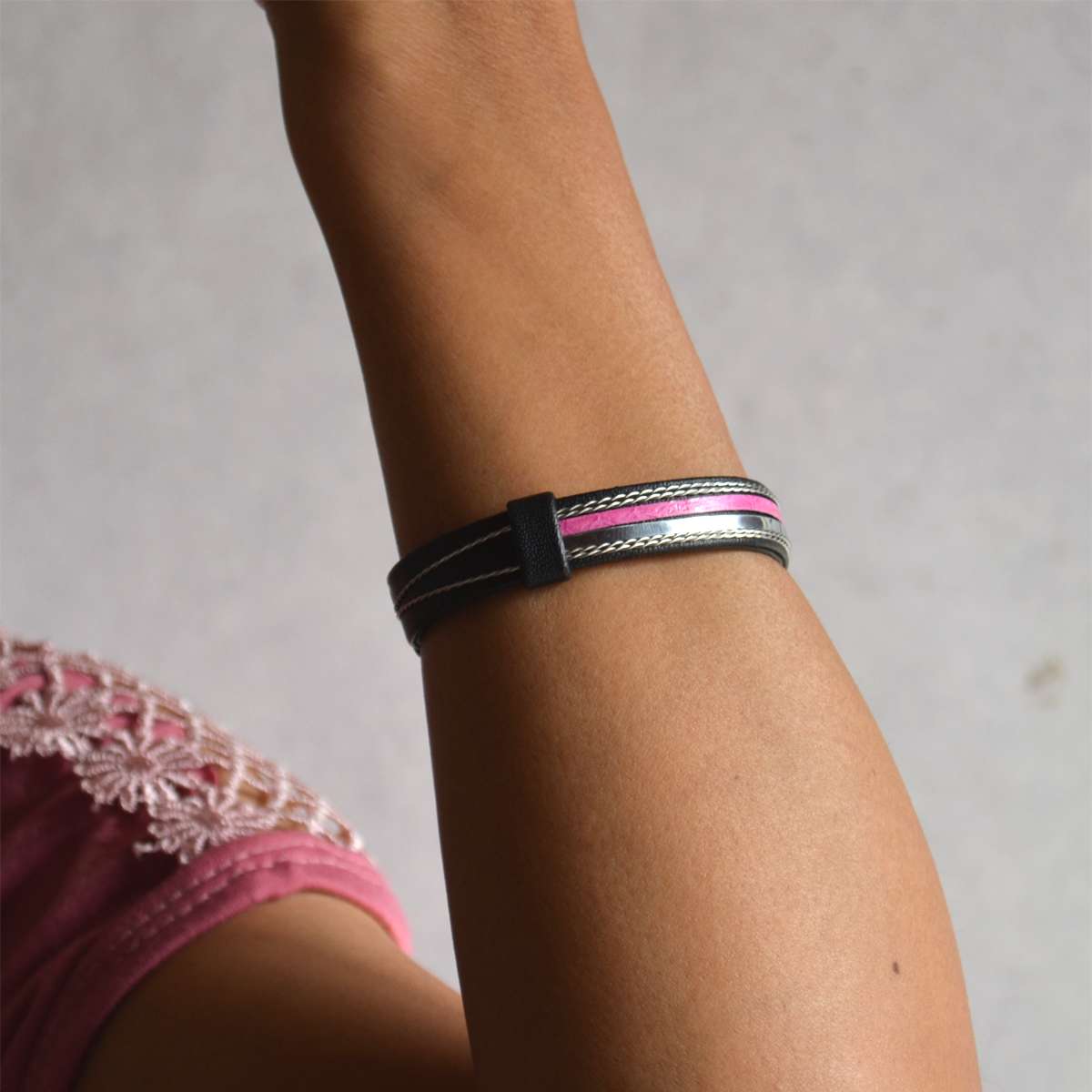 ブレスレット・レザー・シルバーライン : BSV005 在庫数 単価 発注数 - + 備考 カートに入れる 価格: 660 円/ 個 (本体価格:600円+税:60円) 重量: 約 15 グラム レザーを二層に配置し、正面にカラーのかざり、および全長に銀色のライン模様があります。カラーのかざりの終端部に左右に2ヶ所、およびフックの一にレザーの巻物があるブレスレットです。端にフックがあり、取り外しは容易です。サイズ:幅 11mm x 長さ約 18cm [フック含まず]) 在庫数 単価 発注数 - + 備考 カートに入れる