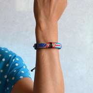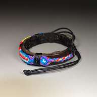 ブレスレット・レザー・バリ模様ミサンガ : BBL003 在庫数 単価 発注数 - + 備考 カートに入れる 価格: 528 円/ 個 (本体価格:480円+税:48円) 重量: 約 8 グラム 扁平な人工革をベースとして、表面にバリスタイルのミサンガをコットンコードの黒紐で数カ所結びつけたブレスレットです。コットンコードでできたテール部を操作することで脱着は容易です。レザーのサイズ:幅12mm x 厚み 3mm x 長さ約 17cmテール:5~8cm 在庫数 単価 発注数 - + 備考 カートに入れる