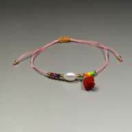 ブレスレット・パール&タッセル : MPT005 在庫数 単価 発注数 - + 備考 カートに入れる 価格: 550 円/ 個 (本体価格:500円+税:50円) 重量: 約 2 グラム 楕円球形をしたパールビーズ(長さ約 10mm x 直径 約 7mm)を中央に配置し、小型タッセル(長さ 16mm)、カラービーズ(直径約 3mm)を片側 5個並べ、硬めのシルク紐を通した部会スレットです。ブレスレットの脱着は、テール部を操作して簡単にできます。ビーズが連なっている長さ:約 4cm 在庫数 単価 発注数 - + 備考 カートに入れる