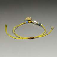 ブレスレット・パール&タッセル : MPT007 在庫数 単価 発注数 - + 備考 カートに入れる 価格: 550 円/ 個 (本体価格:500円+税:50円) 重量: 約 2 グラム 楕円球形をしたパールビーズ(長さ約 10mm x 直径 約 7mm)を中央に配置し、小型タッセル(長さ 16mm)、カラービーズ(直径約 3mm)を片側 5個並べ、硬めのシルク紐を通した部会スレットです。ブレスレットの脱着は、テール部を操作して簡単にできます。ビーズが連なっている長さ:約 4cm 在庫数 単価 発注数 - + 備考 カートに入れる