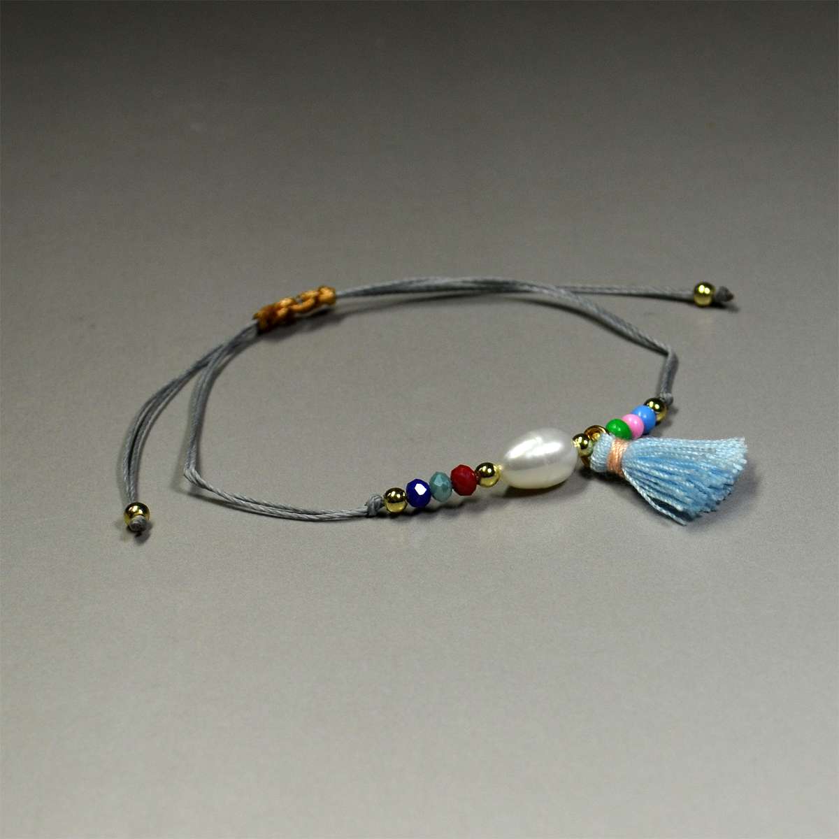 ブレスレット・パール&タッセル : MPT011 在庫数 単価 発注数 - + 備考 カートに入れる 価格: 550 円/ 個 (本体価格:500円+税:50円) 重量: 約 2 グラム 楕円球形をしたパールビーズ(長さ約 10mm x 直径 約 7mm)を中央に配置し、小型タッセル(長さ 16mm)、カラービーズ(直径約 3mm)を片側 5個並べ、硬めのシルク紐を通した部会スレットです。ブレスレットの脱着は、テール部を操作して簡単にできます。ビーズが連なっている長さ:約 4cm 在庫数 単価 発注数 - + 備考 カートに入れる