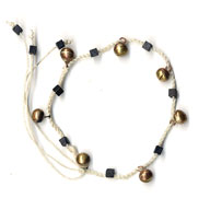 真鍮製の小さな鈴ビーズとウッドビーズを蝋引きひもで編上げたアンクレットです。