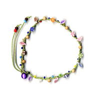 セラミックビーズ、ウッドビーズ、カラービーズを用いてコットンコードで編まれたアンクレットです。