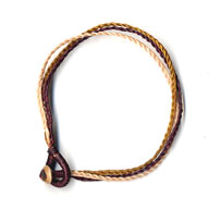 アンクレット・蝋引き紐・三つ編み[小] : ANZ005 在庫数 単価 発注数 - + 備考 カートに入れる 重量: 約 4 グラム 色: 紫紺色・琥珀色・肌色 蝋引き紐を用いて、小さく三つ編みで編まれたの紐(幅約 3mm)が、複数線で構成されています。先端部には算盤の玉形のウッドビーズ(直径10mm 幅 5mm)があり、反対側の端にはウッドビーズを留めるための輪があります。内周は24~25cmです。 在庫数 単価 発注数 - + 備考 カートに入れる