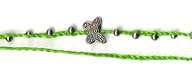 アンクレット・蝶型ビーズ : ABF006 在庫数 単価 発注数 - + 備考 カートに入れる 価格: 396 円/ 個 (本体価格:360円+税:36円) 重量: 約 5 グラム 色: 若草色 蝶の形をしたメタルビーズ(幅14mm 長さ11mm 厚み2mm)を中心に配置し、シルバーカラーの球形ビーズ(直径 4mm)を等間隔(約12mm)に配置し、蝋引き紐で編まれたものと、ビーズはなく三つ編みで編まれたもの、2本を両端で結び、片方には輪、もう一方には留め用の木製ビーズ(直径11mm)を配置したアンクレットです。全長 25~27cm 在庫数 単価 発注数 - + 備考 カートに入れる