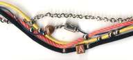 3本の比較的太いひも、1本の細い紐、1本のチェーンで構成されたアンクレットです。