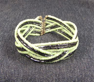 バングル・ビーズ・スリーライン : BBT022 在庫数 単価 発注数 - + 備考 カートに入れる 価格: 770 円/ 個 (本体価格:700円+税:70円) 重量: 約 12 グラム ガラス状の小さなビーズで構成されたバングルです。最大幅 約2cm x 長さ 19cm x 厚み 約2mm 在庫数 単価 発注数 - + 備考 カートに入れる