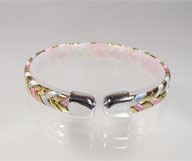 バングル・プラスチック・ナロー : BPN002 在庫数 単価 発注数 - + 備考 カートに入れる 価格: 385 円/ 個 (本体価格:350円+税:35円) 重量: 約 6 グラム 硬質プラスチックのベースの外側にV字模様に編みこまれたひもで表面を覆ったバングルです。サイズ: 高さ 8mm 厚さ 5mm 内径 53~57mm 在庫数 単価 発注数 - + 備考 カートに入れる