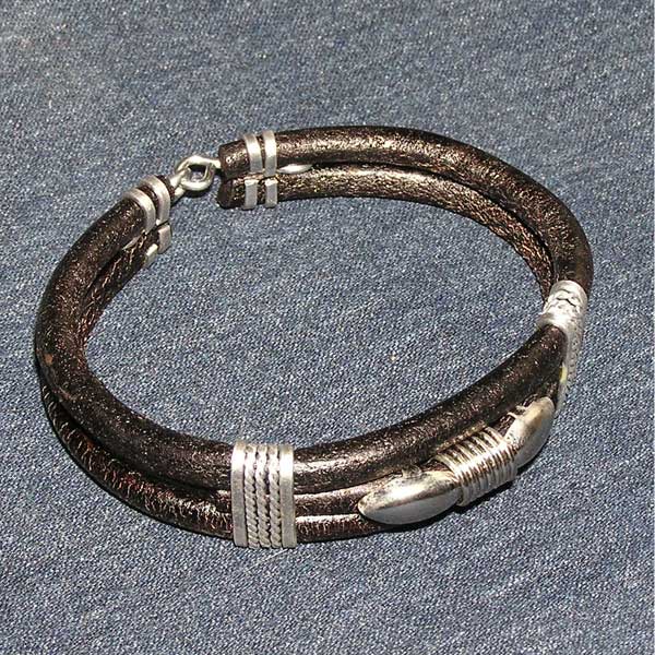 バングル・レザー : LBX001 在庫数 単価 発注数 - + 備考 カートに入れる 価格: 880 円/ 個 (本体価格:800円+税:80円) 重量: 約 16 グラム 直径5mm程度の黒色のレザーを2本(中央部に+1本)を用いて攻勢されています。両端には金具のフックがあり、長さは固定です。中央部には金属のアクセサリーが配置しています。 【サイズ:長さ約200mm、幅約27mm、厚さ5mm】 在庫数 単価 発注数 - + 備考 カートに入れる