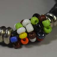 ミサンガ・ガラスビーズ塊 : MCM008 在庫数 単価 発注数 - + 備考 カートに入れる 価格: 275 円/ 個 (本体価格:250円+税:25円) 重量: 約 5 グラム 色: 黒色 カラービーズ (直径約 2mm) を隙間なく紐に通し、それをビーズの塊になるように巻き、端を金具で処理したアクセントを中央部に配置し、少し太めのコットンコード紐で平編みで編み上げたミサンガです。中央部のビーズ部分 長さ:22~24mm 太さ 8~9mmテール:5~7cm全長 20~23cm 在庫数 単価 発注数 - + 備考 カートに入れる