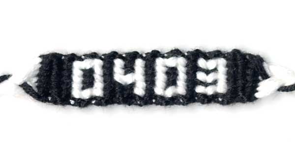 ミサンガ・日付・黒白[0403] : VSD0403 在庫数 単価 発注数 - + 備考 カートに入れる 価格: 385 円/ 個 (本体価格:350円+税:35円) 重量: 約 2 グラム 色: 黒色・白色 背景色:黒色文字色:白色文字の編込み部:9~10mm x 35~50mm全長:24~33cm5ドットで表現された日付数字です。 在庫数 単価 発注数 - + 備考 カートに入れる
