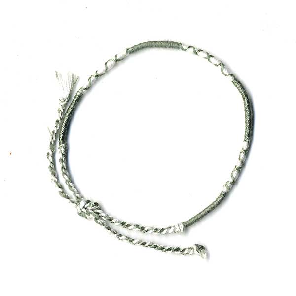 ミサンガ・ひも[中]タイプ : NBS032 在庫数 単価 発注数 - + 備考 カートに入れる 価格: 176 円/ 個 (本体価格:160円+税:16円) 重量: 約 1 グラム 色: 銀鼠色・白色 コットンで紐状に作られたシンプルなミサンガです。 全長 28~32cm ストライプ模様の部分 13~15cm 在庫数 単価 発注数 - + 備考 カートに入れる