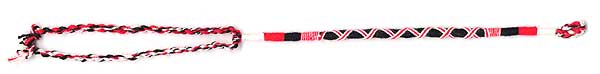 ミサンガ・コットン・ひも[太]タイプ : NAW037 在庫数 単価 発注数 - + 備考 カートに入れる 価格: 242 円/ 個 (本体価格:220円+税:22円) 重量: 約 2 グラム 色: 黒色・白色・赤色 網部の長さは12~13cm 太さ4mm強。二またに分かれたテールの長さは7~12cm程でばらつきがあります。突端部の輪はかなり小さめに作られているので、ボールペンなどを差し込んで、輪を広げて利用してください。 在庫数 単価 発注数 - + 備考 カートに入れる
