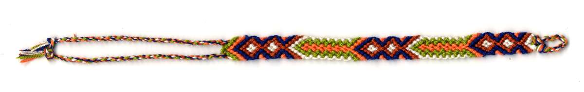 ミサンガ・ワイド[片ひも/大]タイプ : WBW071 在庫数 単価 発注数 - + 備考 カートに入れる 価格: 374 円/ 個 (本体価格:340円+税:34円) 重量: 約 2 グラム 色: 黄赤色・苔色・白色・代赭色・瑠璃紺色 コットン紐を使って模様を編み込んだミサンガです。片側には、テールの紐を結ぶための輪が付けられています。全長 23~30 cm模様が編みこまれている部分のサイズ: 長さ13~15 cm 幅12~15cm 在庫数 単価 発注数 - + 備考 カートに入れる