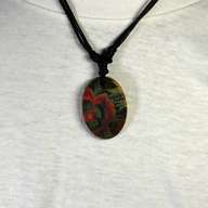 ネックレス・レザー・プリント[楕円] : NLB018 在庫数 単価 発注数 - + 備考 カートに入れる 価格: 220 円/ 個 (本体価格:200円+税:20円) 重量: 約 6 グラム 楕円形状のレザープレート(長径約38mm 短径 27mm 厚み4mm)の上に模様がプリントされたペンダントトップにコットンコード紐を取り付けたネックレスです。裏側には模様はプリントされていません。紐の長さは 40~70cm。調節可能です。 在庫数 単価 発注数 - + 備考 カートに入れる