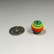 ペンダントトップ・球ビーズ[小・レインボーカラー] : PRQ024 在庫数 単価 発注数 - + 備考 カートに入れる 価格: 198 円/ 個 (本体価格:180円+税:18円) 重量: 約 3 グラム 球形の芯材にレインボーカラーに段染めされたポリエステルコードをぐるぐる巻きつけて接着させています。ぐるぐる巻きの巻き始めと、巻き終わりの部分には、直径約2.5~3mmの穴が空いています。球体の直径:約16mm 在庫数 単価 発注数 - + 備考 カートに入れる