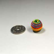 ペンダントトップ・球ビーズ[小・レインボーカラー] : PRQ031 在庫数 単価 発注数 - + 備考 カートに入れる 価格: 198 円/ 個 (本体価格:180円+税:18円) 重量: 約 3 グラム 球形の芯材にレインボーカラーに段染めされたポリエステルコードをぐるぐる巻きつけて接着させています。ぐるぐる巻きの巻き始めと、巻き終わりの部分には、直径約2.5~3mmの穴が空いています。球体の直径:約16mm 在庫数 単価 発注数 - + 備考 カートに入れる