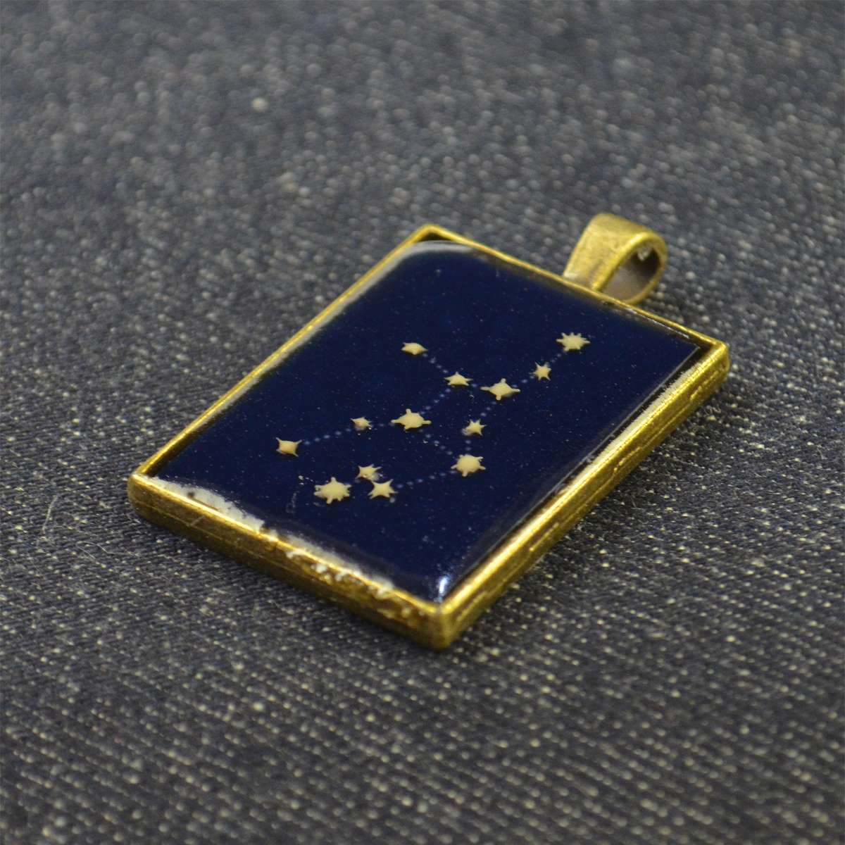 星占いで用いられる星座の星の位置関係を、沖縄のサンゴ礁に生息する有孔虫の仲間である、星砂を使って表現したペンダントトップです。